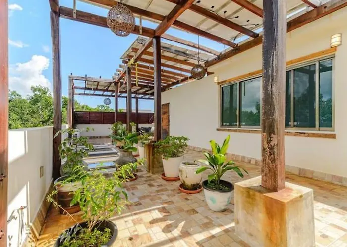 The 3-bedroom Unwind At Villa Magdalena, Private Villa With 3 Bedrooms, Rooftop Pool And Fast Wi-Fi For Digital Nomads Tulum is located nearly a 25-minute walk from the Tulum Underwater and welcomes its guests to enjoy bike riding. Located in the Zama district of Tulum, the villa offers entertainment options such as cooking classes.